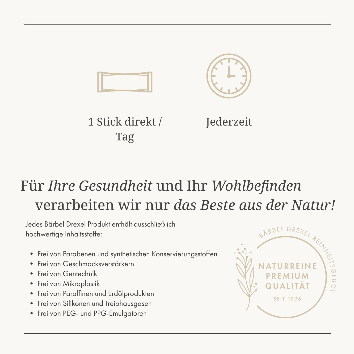 “Seit Jahren unterstütze ich die Produkte von Bärbel Drexel. Die sorgfältige Auswahl an Inhaltsstoffen und die langjährige Erfahrung des wissenschaftlichen Teams, sorgen dafür das die Produkte gut verträglich sind und ihren gewünschten Zweck auch erfüllen.”
