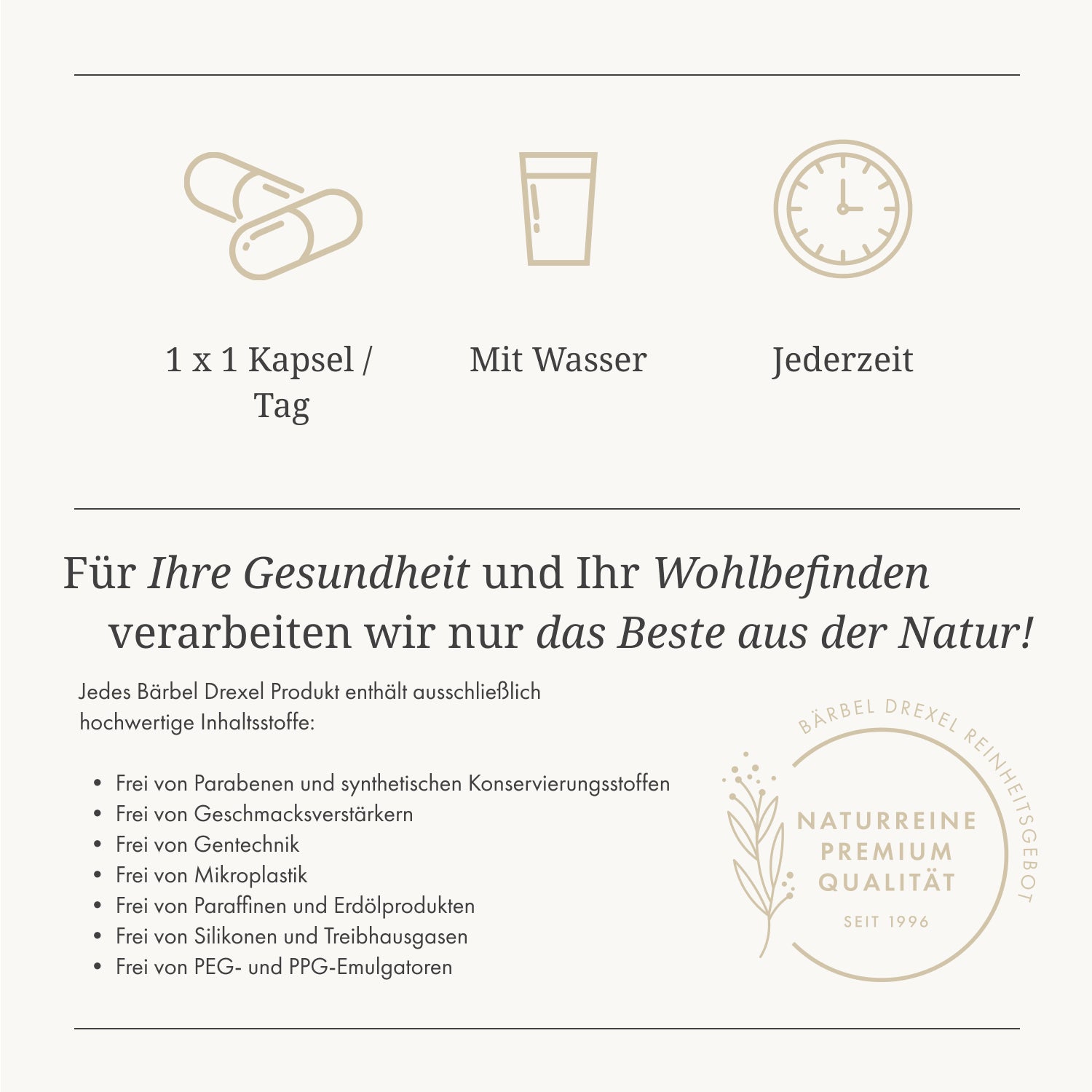 “Seit Jahren unterstütze ich die Produkte von Bärbel Drexel. Die sorgfältige Auswahl an Inhaltsstoffen und die langjährige Erfahrung des wissenschaftlichen Teams, sorgen dafür das die Produkte gut verträglich sind und ihren gewünschten Zweck auch erfüllen.”