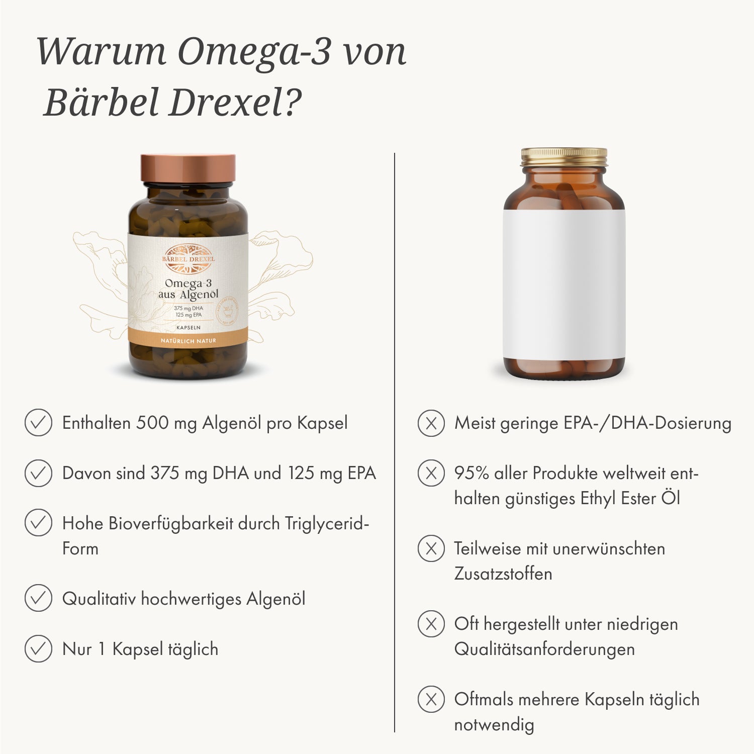 Ich reagiere empfindlich auf Fischöl. Mit dem Algenöl von Bärbel Drexel habe ich endlich ein Produkt gefunden, das ich gut vertrage und das spürbar wirkt.