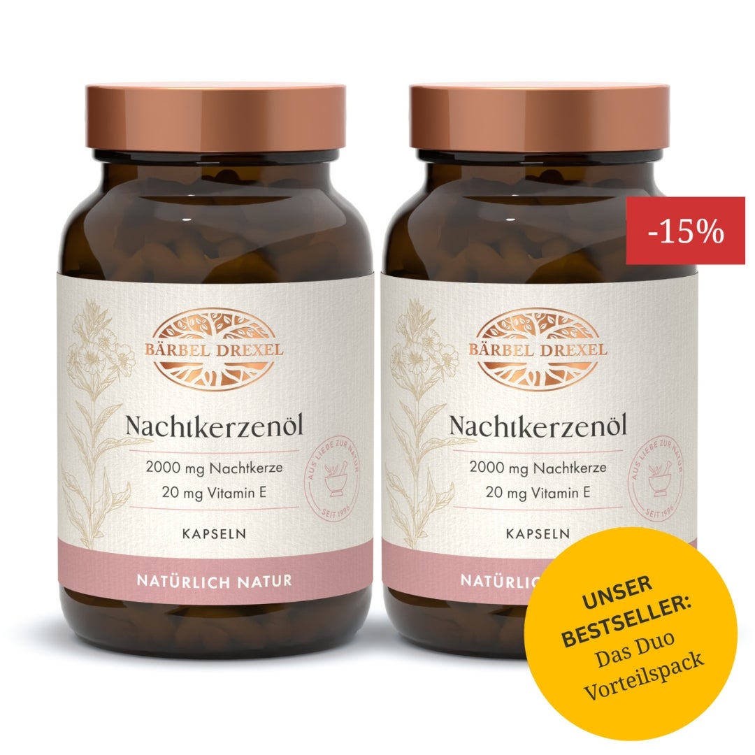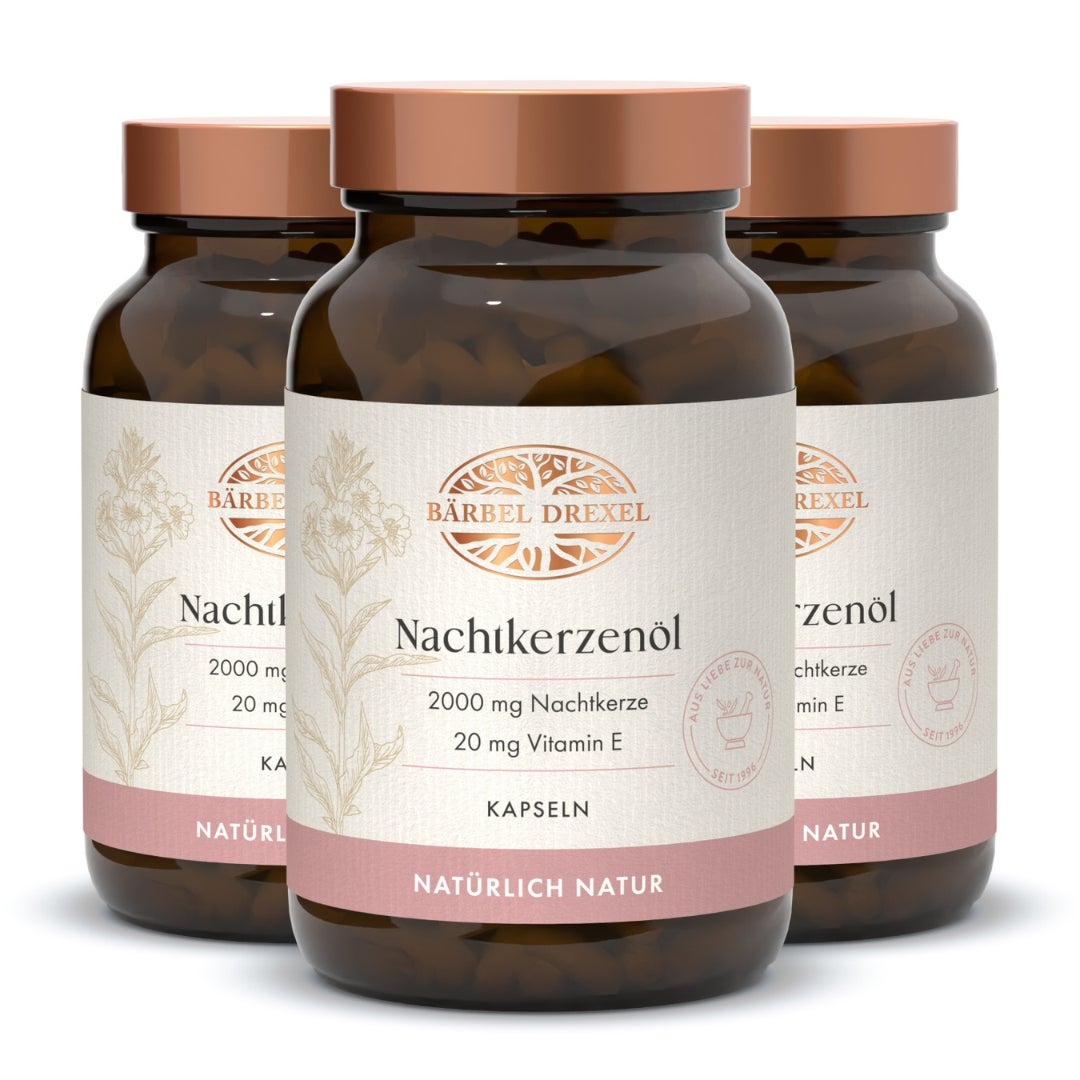 Natürliche Pflege von innen: Nachtkerzenöl mit mindestens 10 % Gamma-Linolensäure unterstützt die Hautgesundheit und das hormonelle Gleichgewicht!